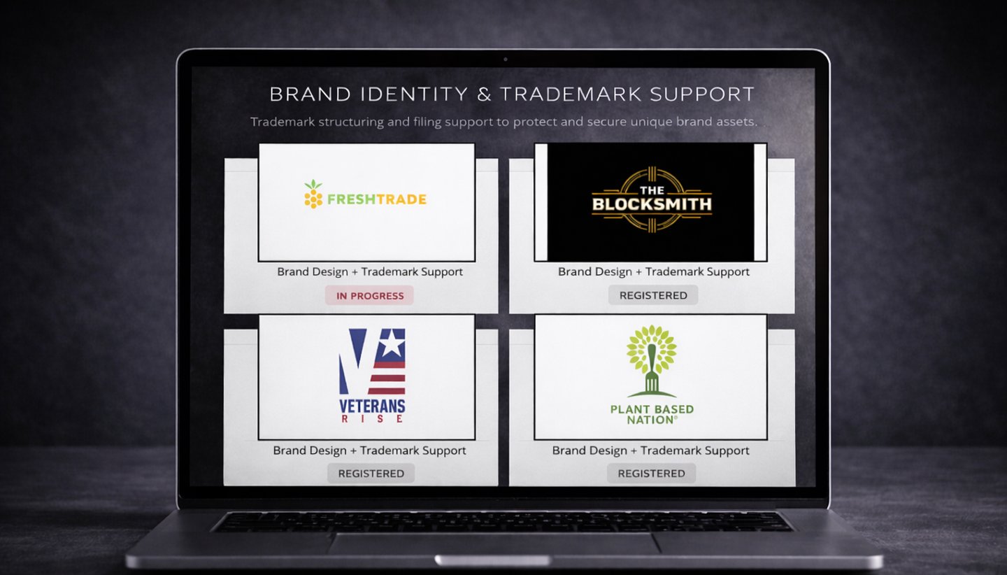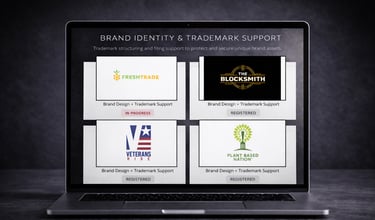 This is a small sample of our work—from brand identity and messaging to website design and trademark support.